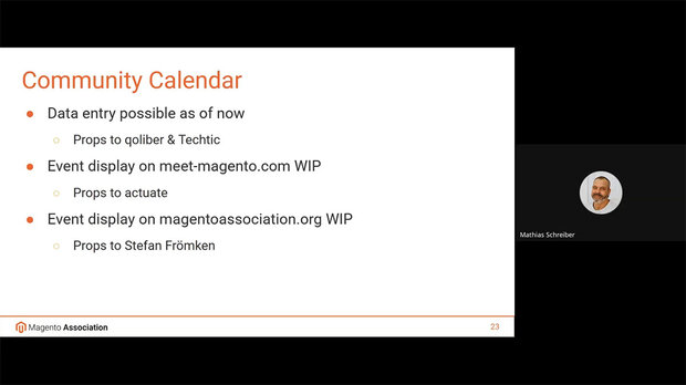 Mathias Schreiber highlighted improvements across Magento Association web services, including: