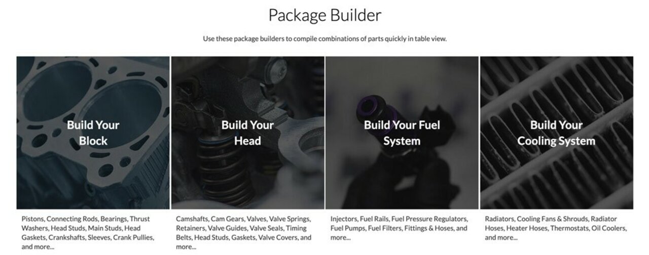 - The Package Builder. This feature on the Real Street Performance site serves as both a sales and educational tool. The Package Builder walks customers step by step through the highly complex process of selecting all the parts they need to build major car components. Customers can also enter a vehicle’s make, model and engine type to receive compatible parts and accessories. This tool accelerates the buying process, transforming a 30- to 60-minute process into a one- to two-minute interaction. Plus, this enhancement reduced calls to the support center, saving staffing costs.
