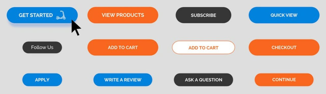 To approach this effort, the purchase process was segmented into a linear path (as depicted in the illustration above). We begin with the homepage, and then go through the search or category page to land on a product page. From there, we go through the cart and checkout process. It is easy to identify the call-to-action buttons during the customer journey. In the screenshot below, you can see some of the 20 buttons that are customized with micro-animations on rollover and/or click.