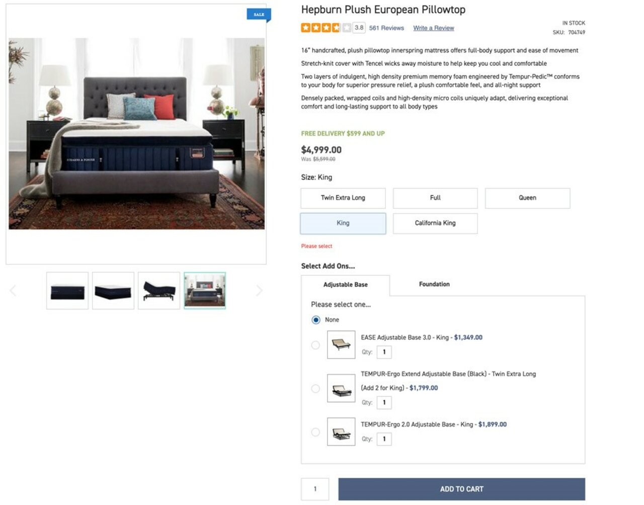 - Add-ons. Sleep Outfitters enhanced its product pages with intuitive add-ons to upsell the customer.