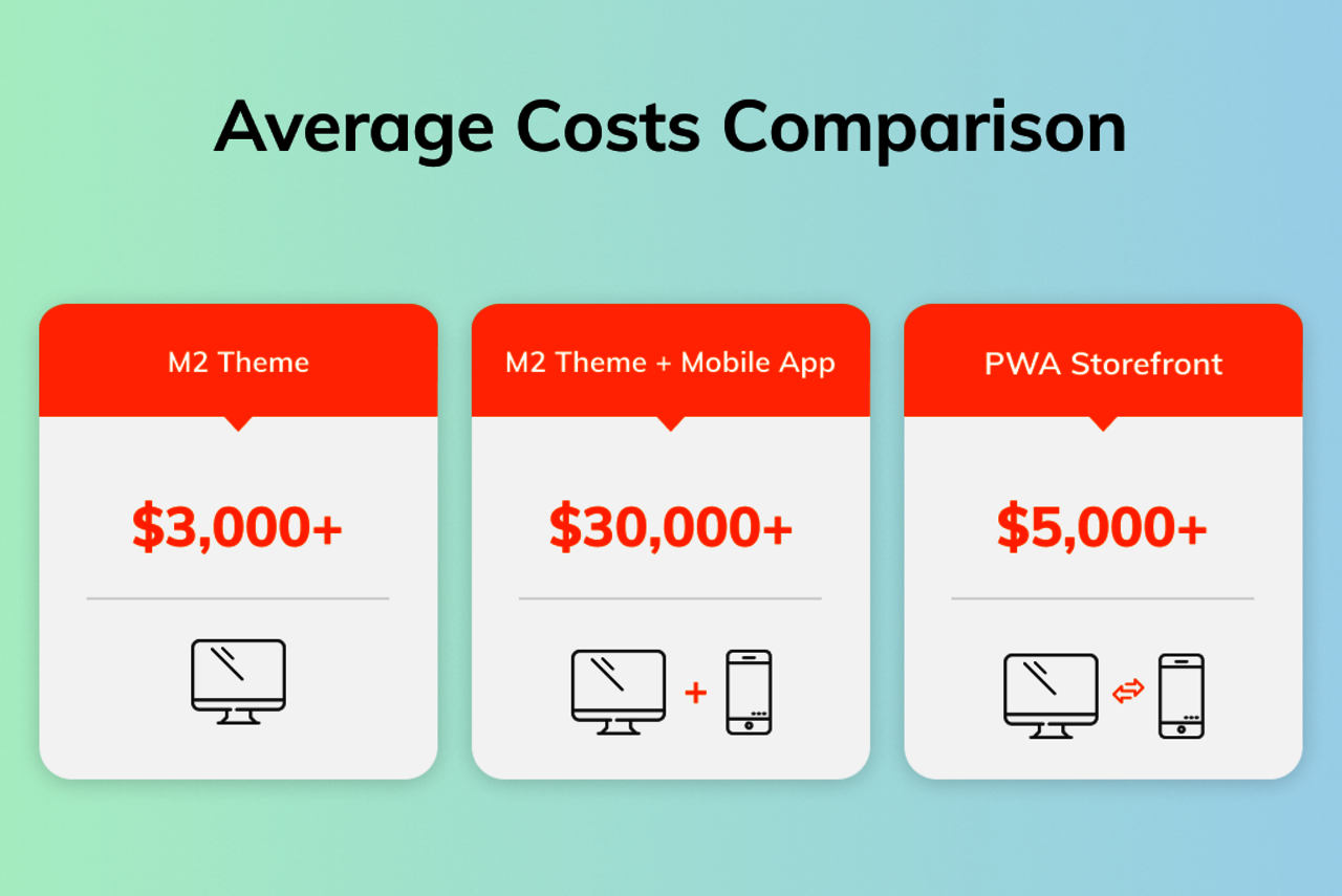Talking from personal experience, the average PWA project amounts to $10,000 USD, which is slightly more than developing a traditional Magento theme and three times less expensive than developing a full-fledged mobile app.