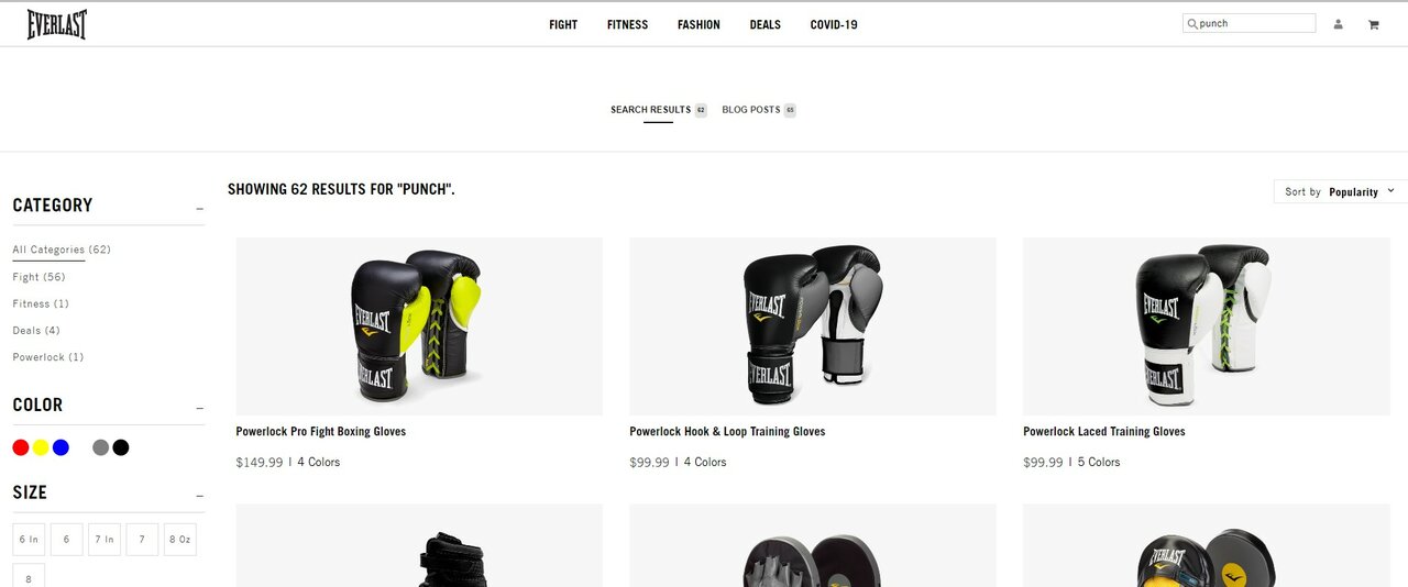 Spelling tolerance on Everlast’s site.