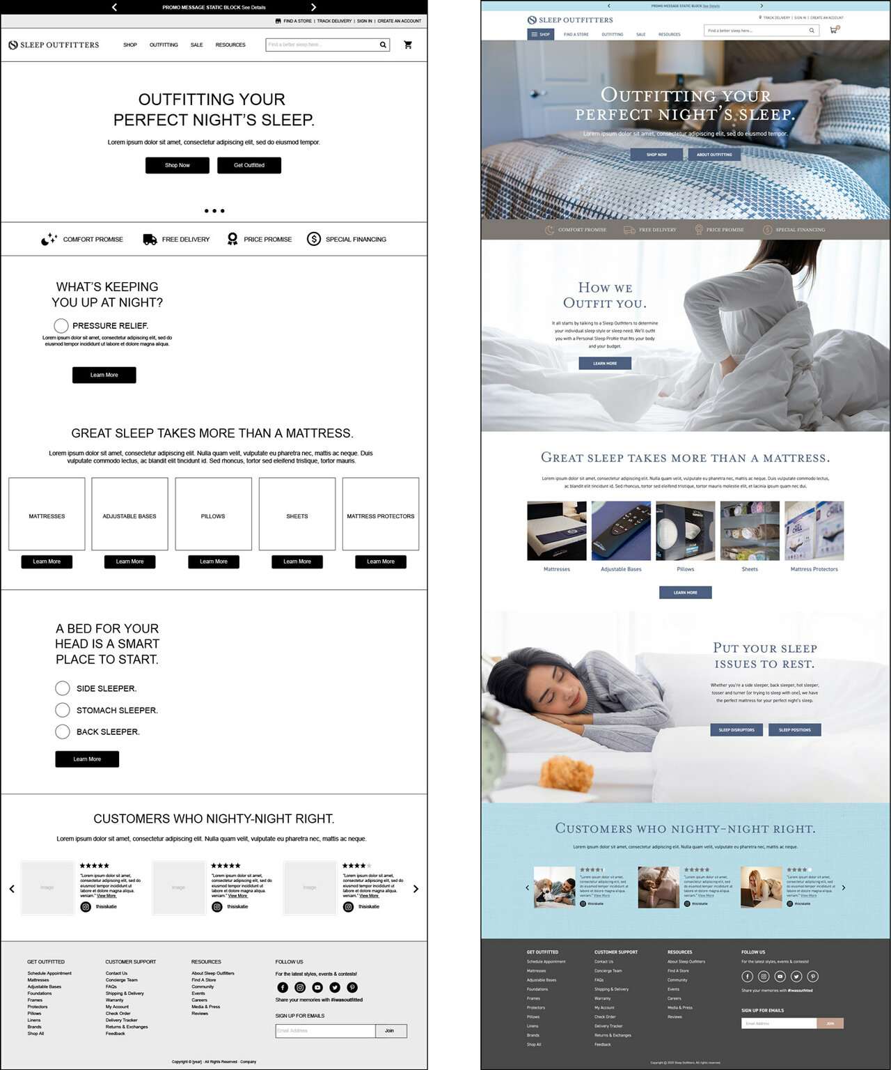 Below is an example of a wireframe (UX) to user interface (UI) for a website homepage.