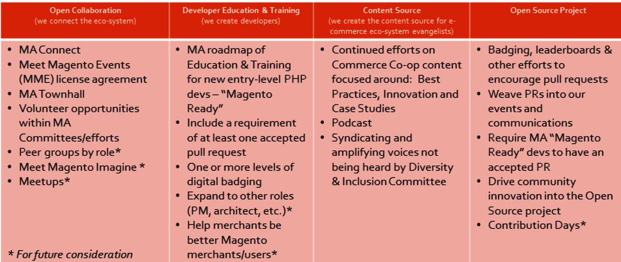 With that in mind, I'm excited to share with you the four pillars of the Magento Association.