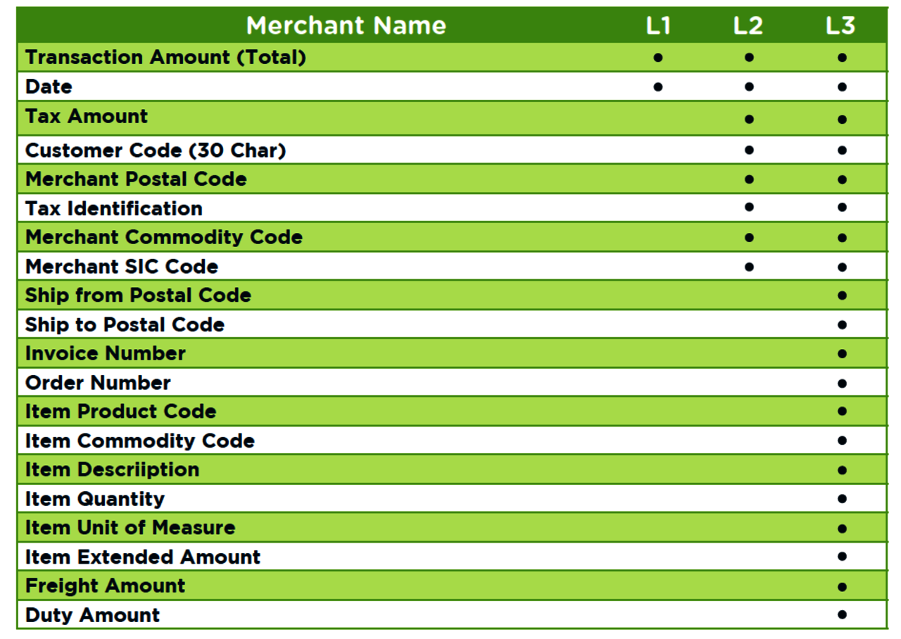 Look for a provider that offers interchange plus pricing that supports automated Level 3 data processing (see data points below).