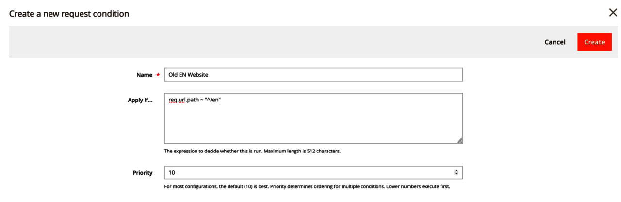 Now, when Fastly decides which backend system to load content from, it will validate conditions if they exist. In our case, Fastly will detect that request starts from /en prefix and will use another backend system, which it will deliver content from.