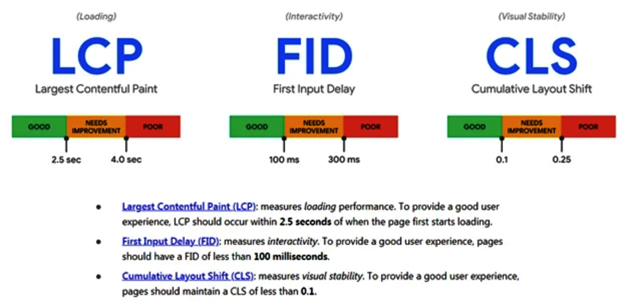 But what exactly are Core Web Vitals? Essentially, they are three metrics that score a user’s experience when loading a webpage. These metrics score how quickly page content loads, how quickly a browser loading a webpage can respond to a user’s input and how unstable the content is as it loads in the browser.