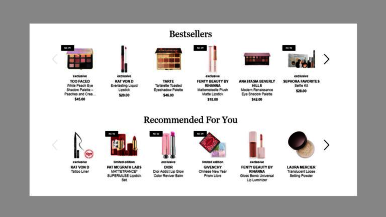 Sephora shows its best sellers on the homepage along with a personalized suggestion, according to the buyer’s browsing and purchasing behavior.